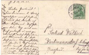 123 years ago today, this is a 12.12.12. Karte postmarked from Chemnitz to a friend, Gertrud Wallish